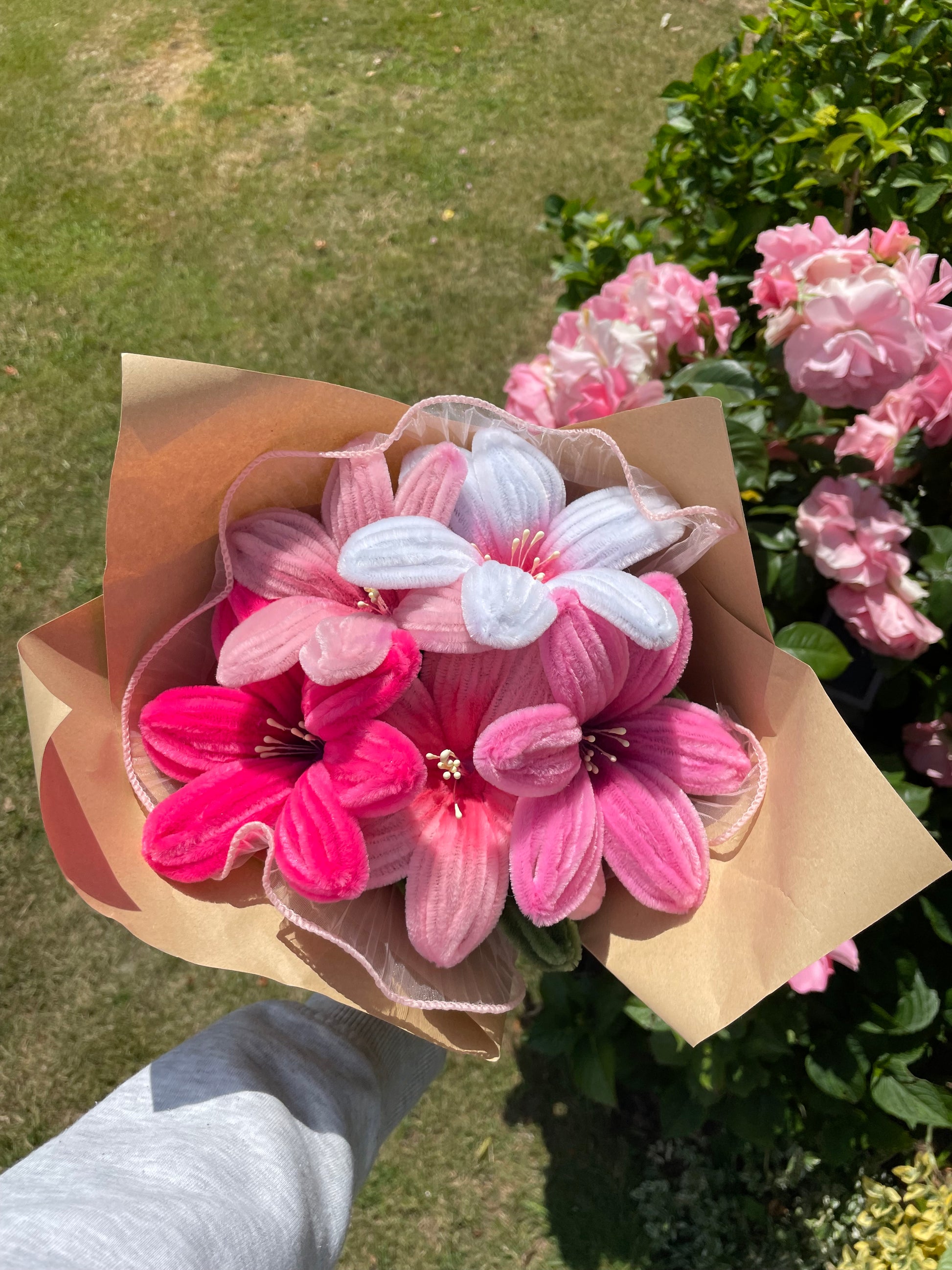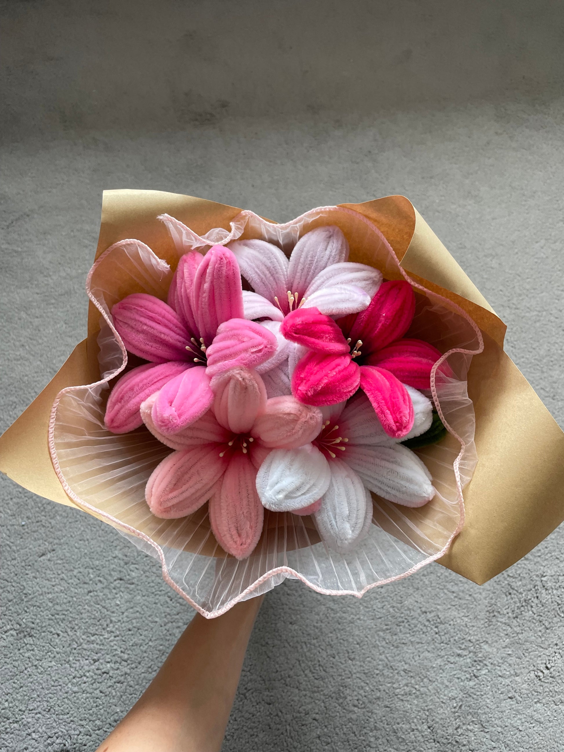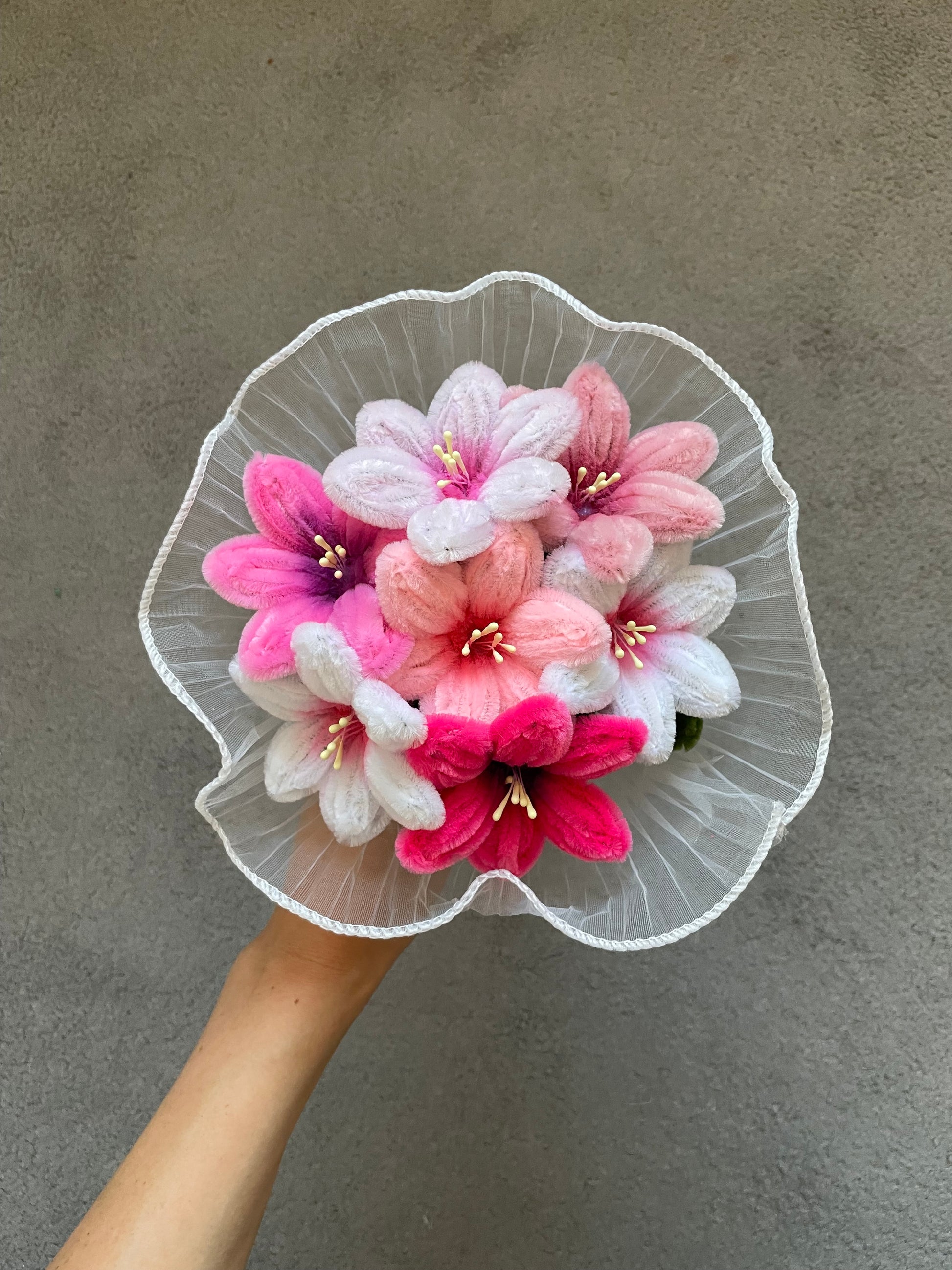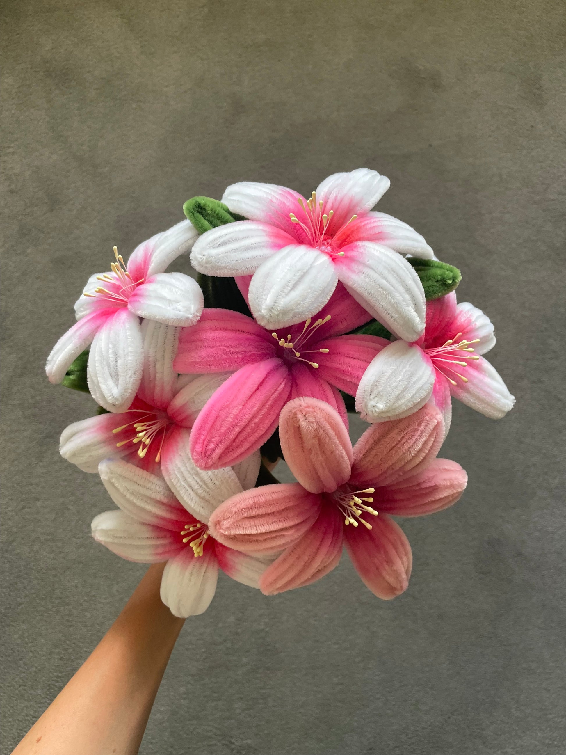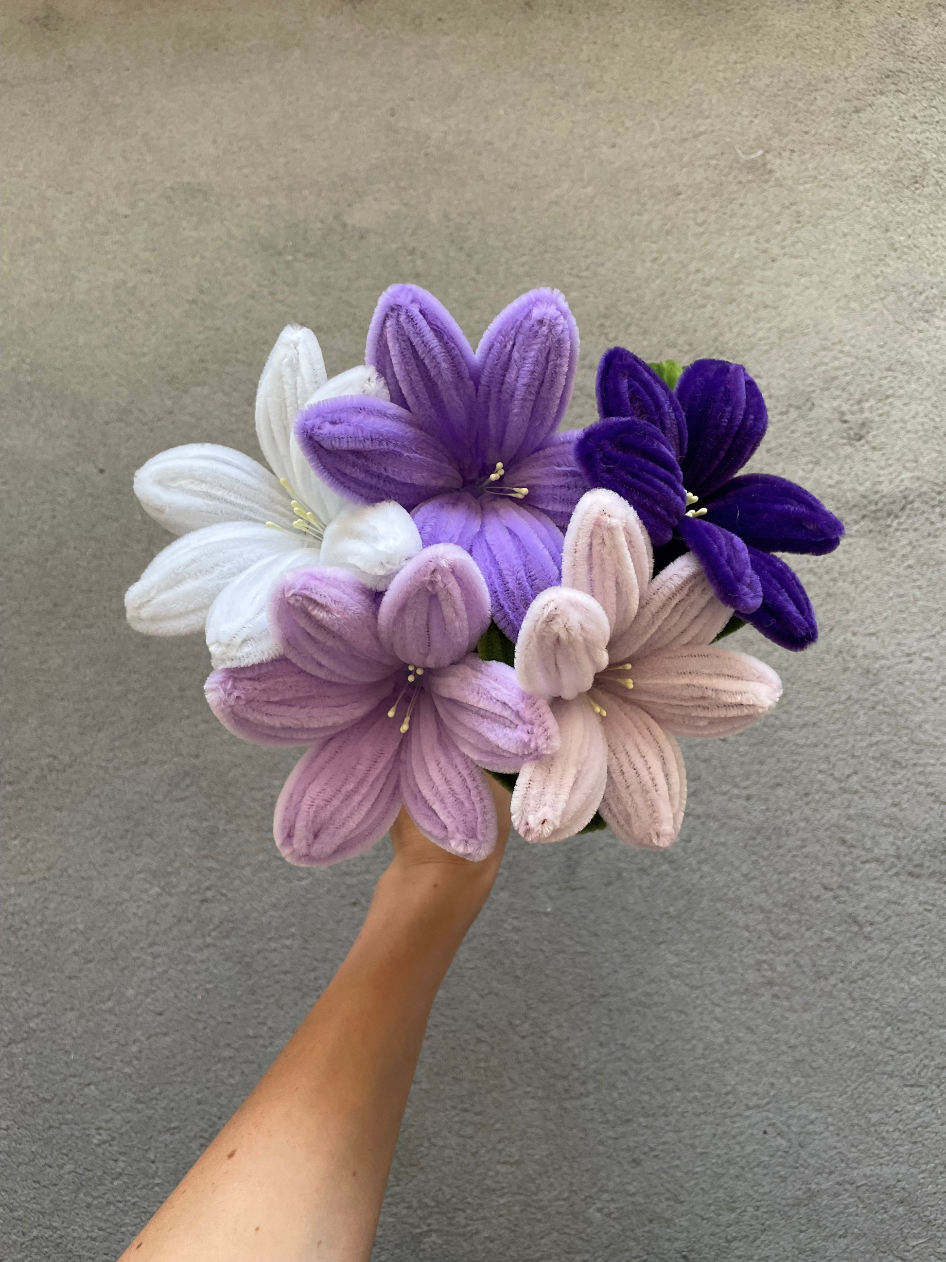 Handmade pipe cleaner lily bouquet, Made in one chosen colour.