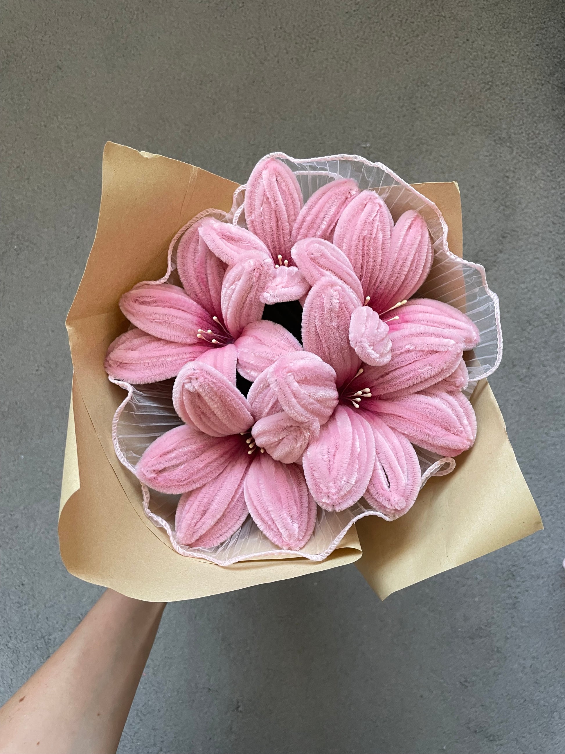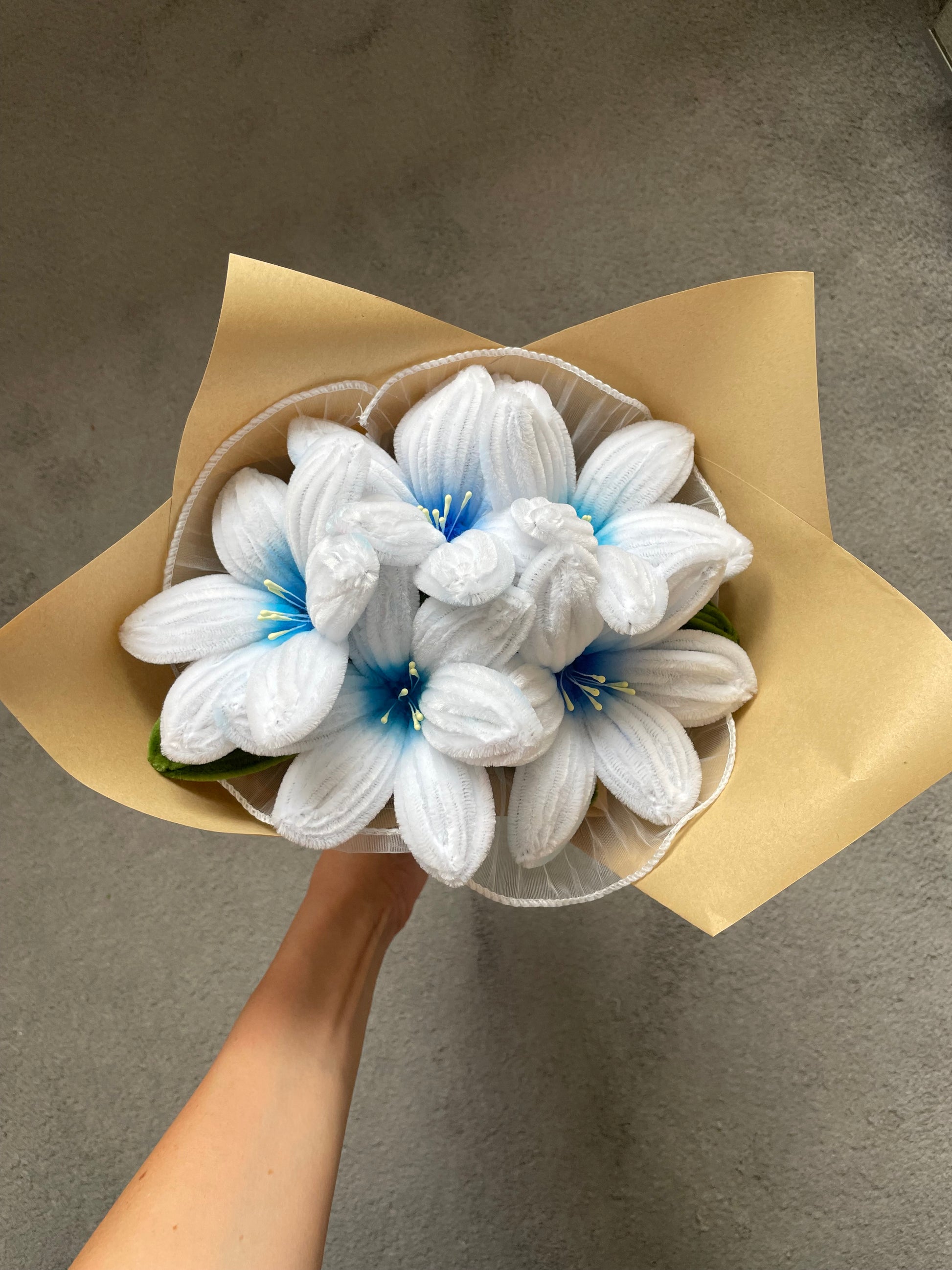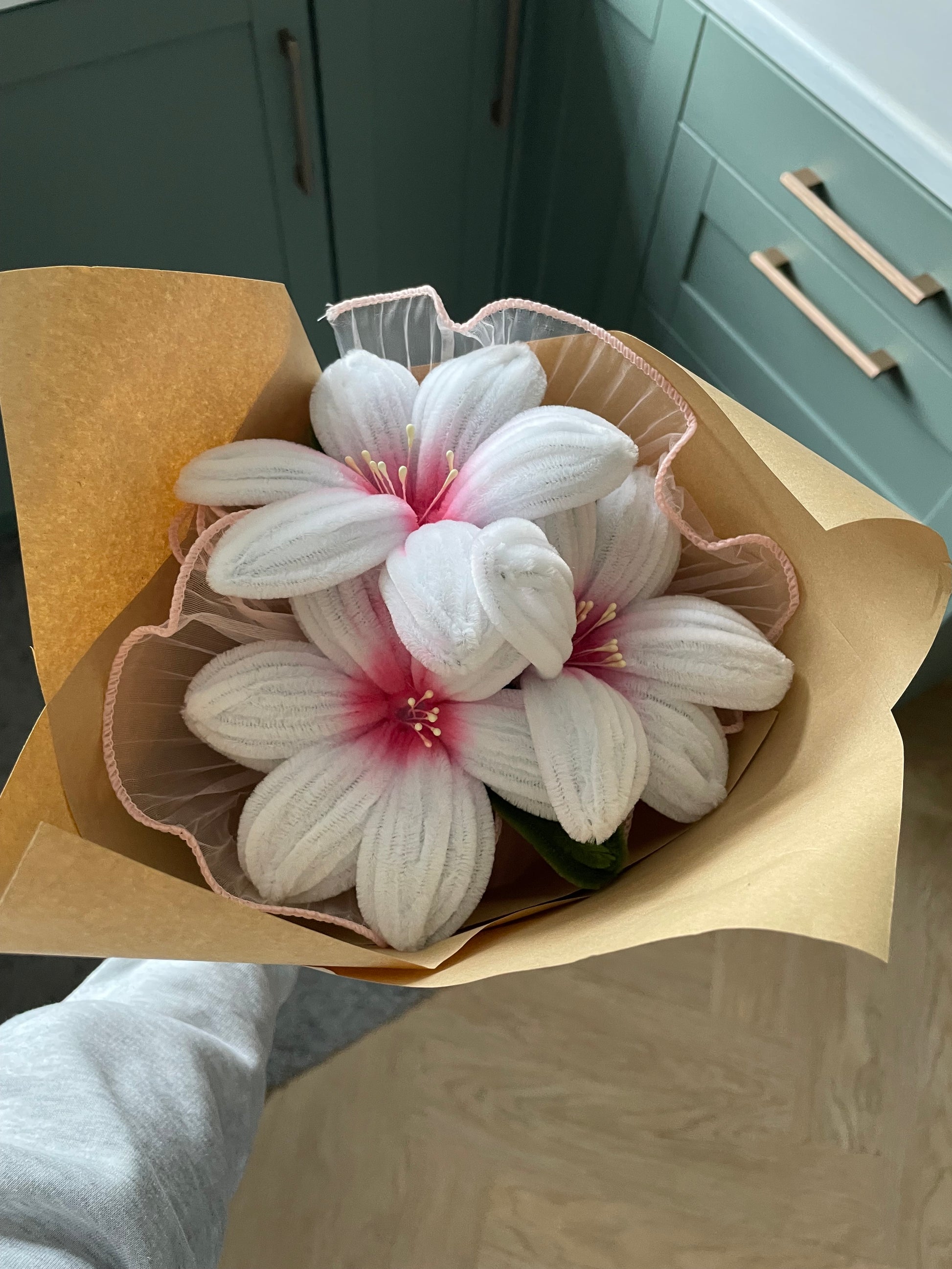 Handmade pipe cleaner lily bouquet, Made in one chosen colour.